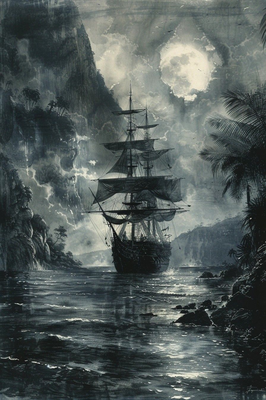 A fedélzeten felmorajló rövid hahotának egyetlen éles kézlegyintés vet véget. A karmazsin színű elegáns ruhába öltözött, bicegő nemes megtámasztja vasból kovácsolt jobb lábát a fedélzet egy biztosabb pontján és megigazítja méretes, tollal díszített kalapját.